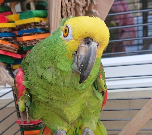 He made the long trip to live with us, since being here he has a new cage with a constant supply of new toys (NP obviously!)