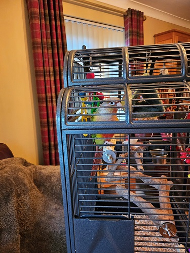 He loves his toys, especially the little mouse which he hides under the settee. He?s a very special bird.